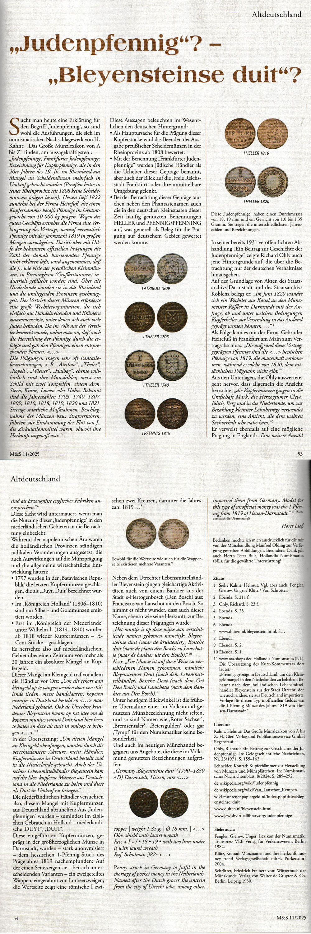 | Quelle: Numismatisches Nachrichtenblatt, Ausgabe Mai 2025, Seiten 189 ff. |